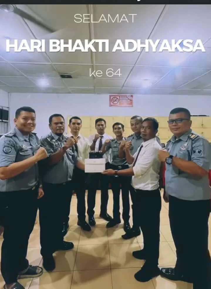 MEDAN - Dalam rangka memperingati Hari Bhakti Adhyaksa yang ke 64 Tahun, Rumah Tahanan Negara Kelas I Medan ucapkan Selamat dan Pemberian Kue kepada Pegawai Kejaksaan, Selasa (23/07).